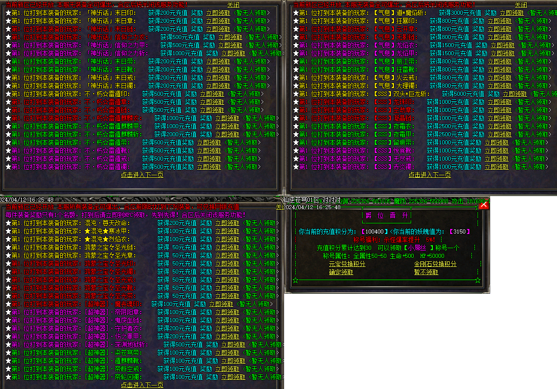 拿沙奖励: 价值上千货币+渡劫10可以兑换新区五百充值